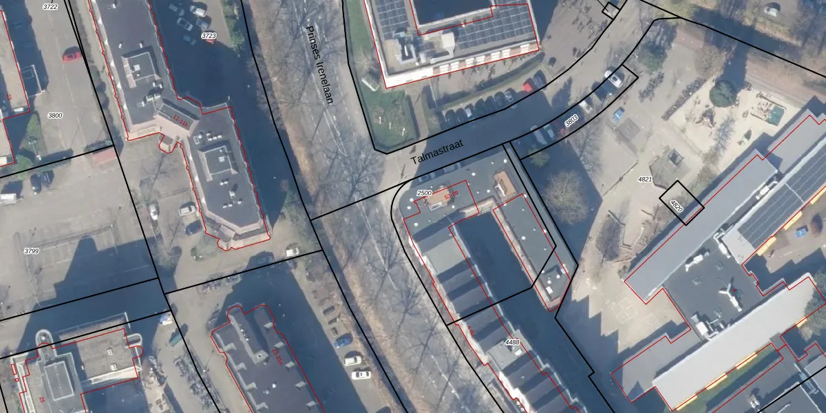 Talmastraat 53-a is gelegen op kadastraal perceel WEE02B2500. Deze kadastrale aanduiding is uniek en wordt gebruikt door het Kadaster om eigendomsrechten en andere zakelijke rechten vast te leggen. Het perceel maakt onderdeel uit van de kadastrale gemeente Weesp.
