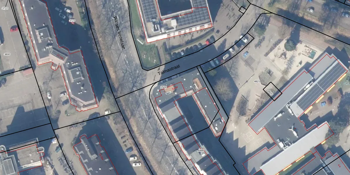 Het perceel waarop Talmastraat 53 staat heeft een oppervlakte van 1093 m². Dit is een zeer groot perceel. De perceeloppervlakte wordt geregistreerd door het Kadaster. Gedetailleerde informatie over de maten van dit perceel kunt u vinden in het rapport Kadastrale kaart met maatvoering van Talmastraat 53.
