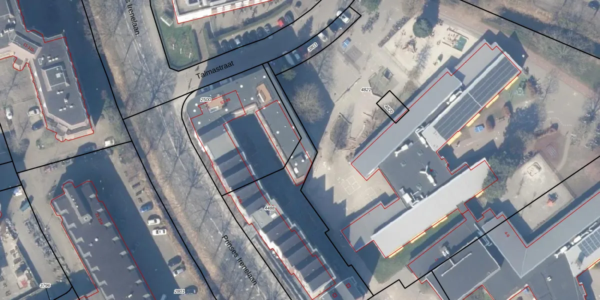 Het perceel waarop Talmastraat 57 staat heeft een oppervlakte van 1397 m². Dit is een zeer groot perceel. De perceeloppervlakte wordt geregistreerd door het Kadaster. Gedetailleerde informatie over de maten van dit perceel kunt u vinden in het rapport Kadastrale kaart met maatvoering van Talmastraat 57.