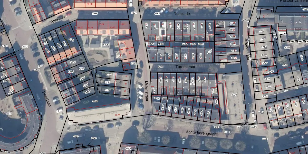 Torenstraat 19 is gelegen op kadastraal perceel WEE02A3565. Deze kadastrale aanduiding is uniek en wordt gebruikt door het Kadaster om eigendomsrechten en andere zakelijke rechten vast te leggen. Het perceel maakt onderdeel uit van de kadastrale gemeente Weesp.