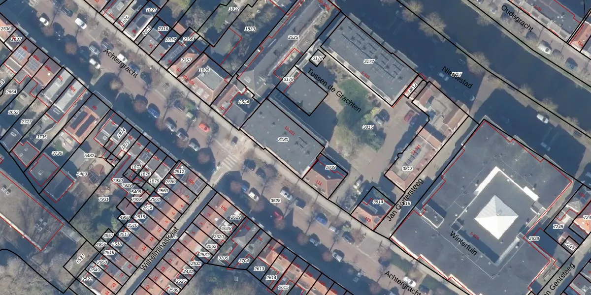 Tussen de Grachten 119 is gelegen op kadastraal perceel WEE02B3180. Deze kadastrale aanduiding is uniek en wordt gebruikt door het Kadaster om eigendomsrechten en andere zakelijke rechten vast te leggen. Het perceel maakt onderdeel uit van de kadastrale gemeente Weesp.