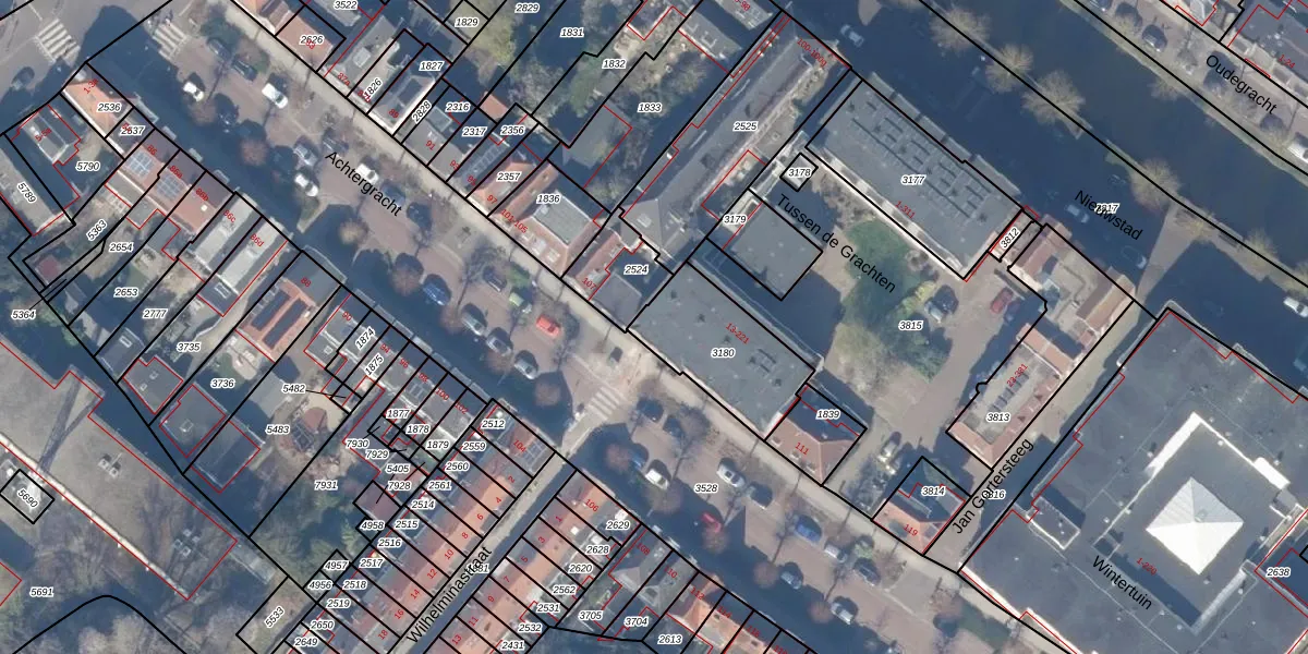 Tussen de Grachten 213 is gelegen op kadastraal perceel WEE02B3180. Deze kadastrale aanduiding is uniek en wordt gebruikt door het Kadaster om eigendomsrechten en andere zakelijke rechten vast te leggen. Het perceel maakt onderdeel uit van de kadastrale gemeente Weesp.