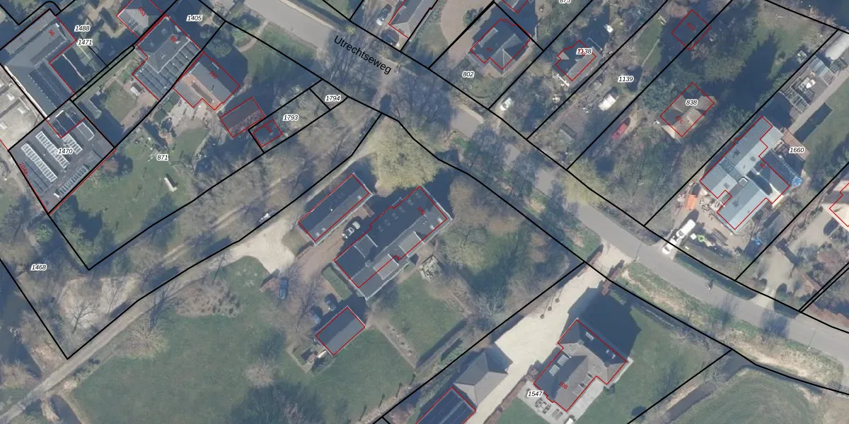 Het perceel waarop Utrechtseweg 106 staat heeft een oppervlakte van 1,9 ha. Dit is een zeer groot perceel. De perceeloppervlakte wordt geregistreerd door het Kadaster. Gedetailleerde informatie over de maten van dit perceel kunt u vinden in het rapport Kadastrale kaart met maatvoering van Utrechtseweg 106.