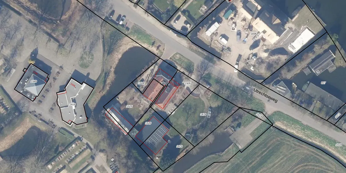 Utrechtseweg 112 is gelegen op kadastraal perceel WEE02E1505. Deze kadastrale aanduiding is uniek en wordt gebruikt door het Kadaster om eigendomsrechten en andere zakelijke rechten vast te leggen. Het perceel maakt onderdeel uit van de kadastrale gemeente Weesp.