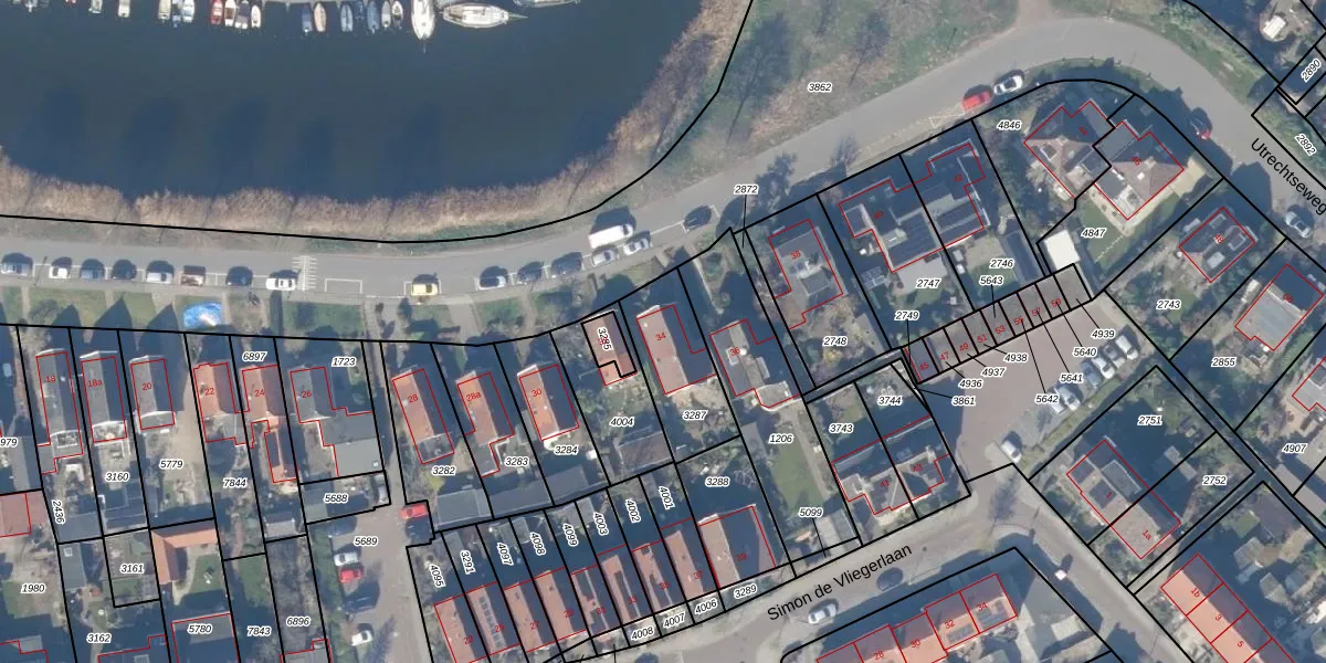 Utrechtseweg 34 is gelegen op kadastraal perceel WEE02B3287. Deze kadastrale aanduiding is uniek en wordt gebruikt door het Kadaster om eigendomsrechten en andere zakelijke rechten vast te leggen. Het perceel maakt onderdeel uit van de kadastrale gemeente Weesp.