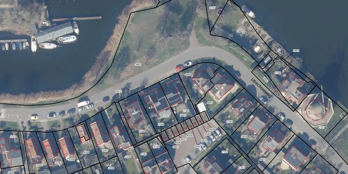 Utrechtseweg 42 is gelegen op kadastraal perceel WEE02B2746. Deze kadastrale aanduiding is uniek en wordt gebruikt door het Kadaster om eigendomsrechten en andere zakelijke rechten vast te leggen. Het perceel maakt onderdeel uit van de kadastrale gemeente Weesp.