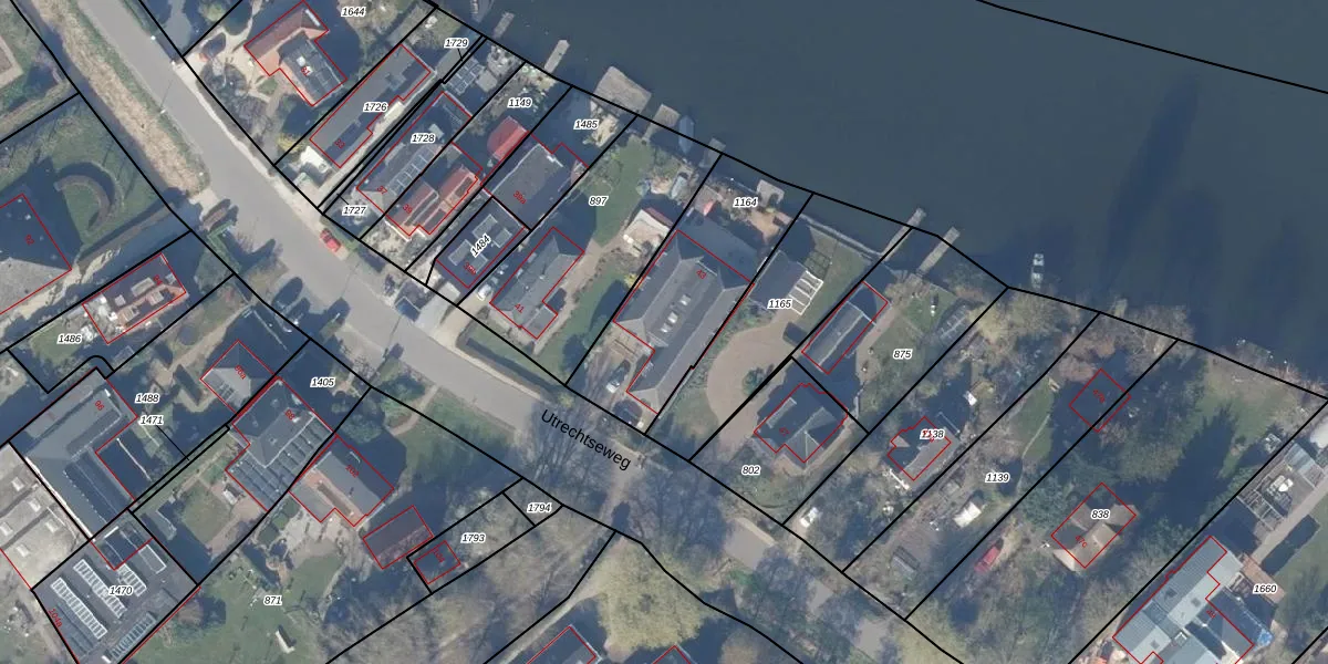 Utrechtseweg 43 is gelegen op kadastraal perceel WEE02E1164. Deze kadastrale aanduiding is uniek en wordt gebruikt door het Kadaster om eigendomsrechten en andere zakelijke rechten vast te leggen. Het perceel maakt onderdeel uit van de kadastrale gemeente Weesp.