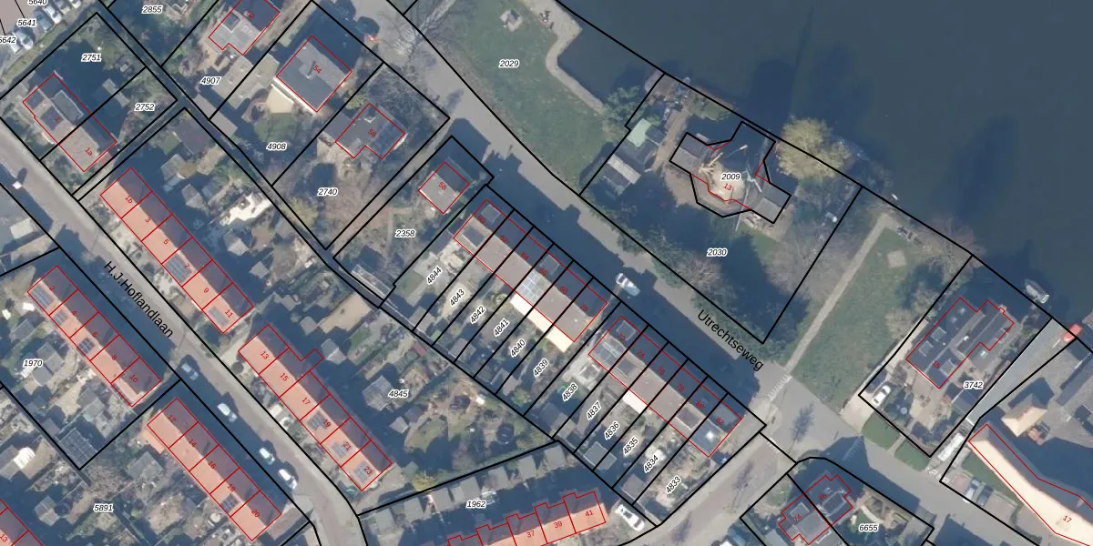 Gebruik de zoekbalk of klik op een perceel voor informatie over de adressen binnen dit perceel.