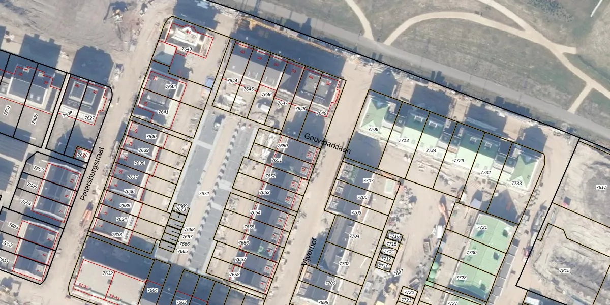 Gebruik de zoekbalk of klik op een perceel voor informatie over de adressen binnen dit perceel.