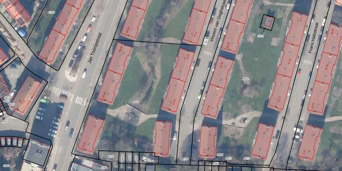 Vincent van Goghstraat 23 is gelegen op kadastraal perceel WEE02B4932. Deze kadastrale aanduiding is uniek en wordt gebruikt door het Kadaster om eigendomsrechten en andere zakelijke rechten vast te leggen. Het perceel maakt onderdeel uit van de kadastrale gemeente Weesp.