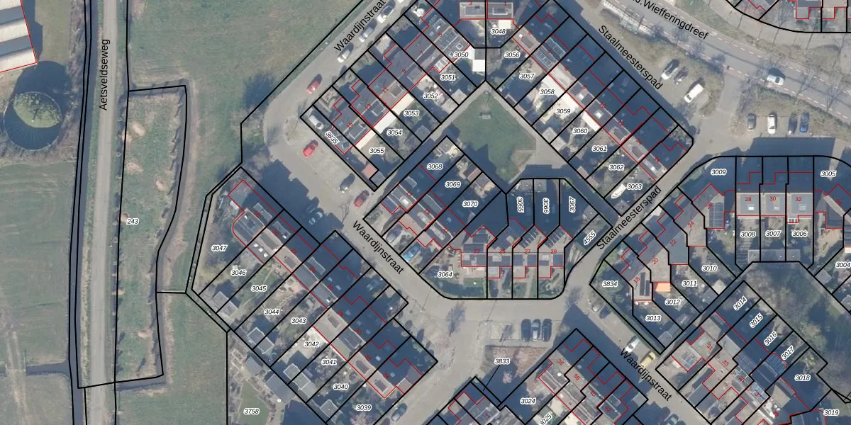 Gebruik de zoekbalk of klik op een perceel voor informatie over de adressen binnen dit perceel.