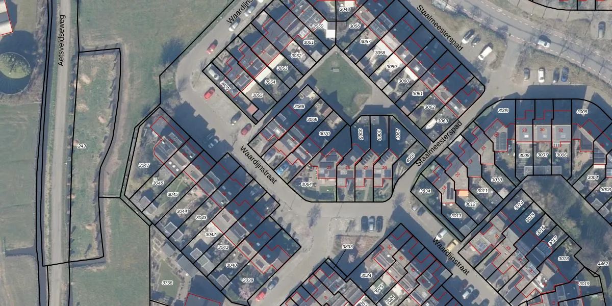 Het perceel waarop Waardijnstraat 21 staat heeft een oppervlakte van 172 m². Dit is een middelgroot perceel. De perceeloppervlakte wordt geregistreerd door het Kadaster. Gedetailleerde informatie over de maten van dit perceel kunt u vinden in het rapport Kadastrale kaart met maatvoering van Waardijnstraat 21.