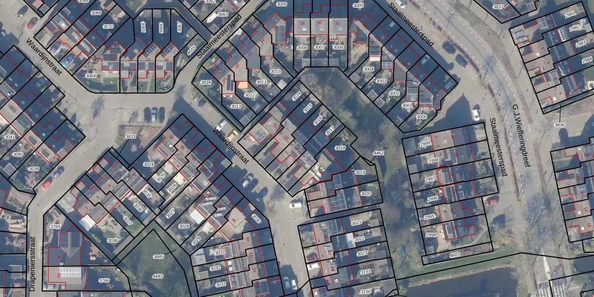 Het perceel waarop Waardijnstraat 35 staat heeft een oppervlakte van 160 m². Dit is een middelgroot perceel. De perceeloppervlakte wordt geregistreerd door het Kadaster. Gedetailleerde informatie over de maten van dit perceel kunt u vinden in het rapport Kadastrale kaart met maatvoering van Waardijnstraat 35.