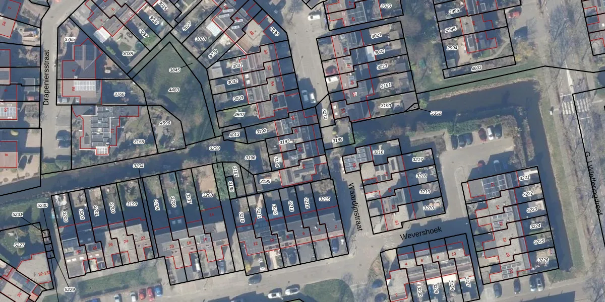 Gebruik de zoekbalk of klik op een perceel voor informatie over de adressen binnen dit perceel.