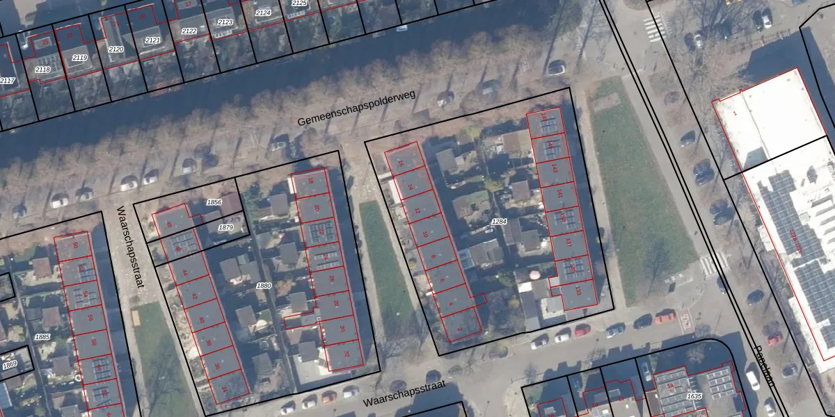 Het perceel waarop Waarschapsstraat 12 staat heeft een oppervlakte van 2547 m². Dit is een zeer groot perceel. De perceeloppervlakte wordt geregistreerd door het Kadaster. Gedetailleerde informatie over de maten van dit perceel kunt u vinden in het rapport Kadastrale kaart met maatvoering van Waarschapsstraat 12.