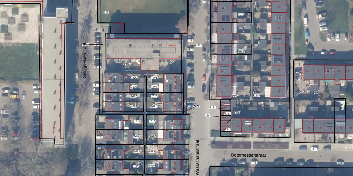 Gebruik de zoekbalk of klik op een perceel voor informatie over de adressen binnen dit perceel.