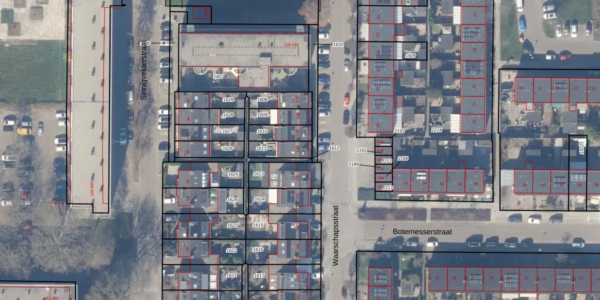 Gebruik de zoekbalk of klik op een perceel voor informatie over de adressen binnen dit perceel.