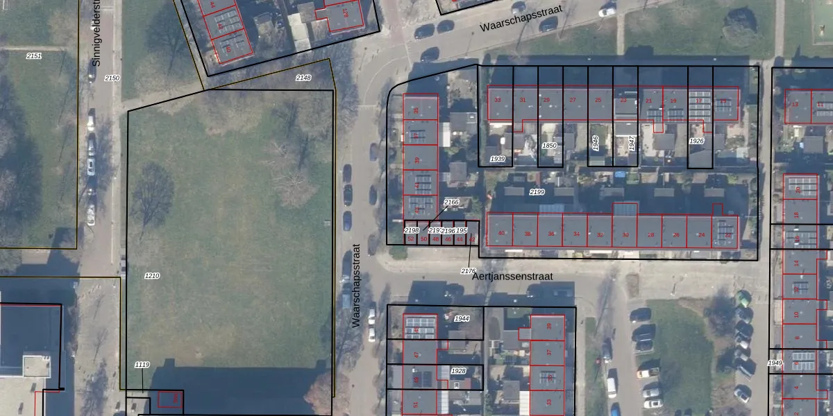 Het perceel waarop Waarschapsstraat 43 staat heeft een oppervlakte van 3115 m². Dit is een zeer groot perceel. De perceeloppervlakte wordt geregistreerd door het Kadaster. Gedetailleerde informatie over de maten van dit perceel kunt u vinden in het rapport Kadastrale kaart met maatvoering van Waarschapsstraat 43.