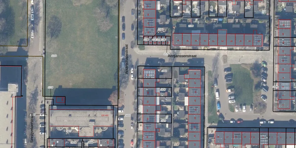 Gebruik de zoekbalk of klik op een perceel voor informatie over de adressen binnen dit perceel.