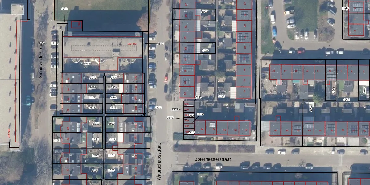 Het perceel waarop Waarschapsstraat 63 staat heeft een oppervlakte van 3141 m². Dit is een zeer groot perceel. De perceeloppervlakte wordt geregistreerd door het Kadaster. Gedetailleerde informatie over de maten van dit perceel kunt u vinden in het rapport Kadastrale kaart met maatvoering van Waarschapsstraat 63.