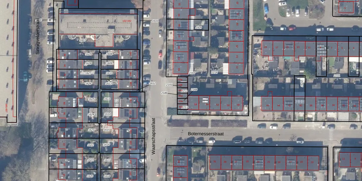 Gebruik de zoekbalk of klik op een perceel voor informatie over de adressen binnen dit perceel.