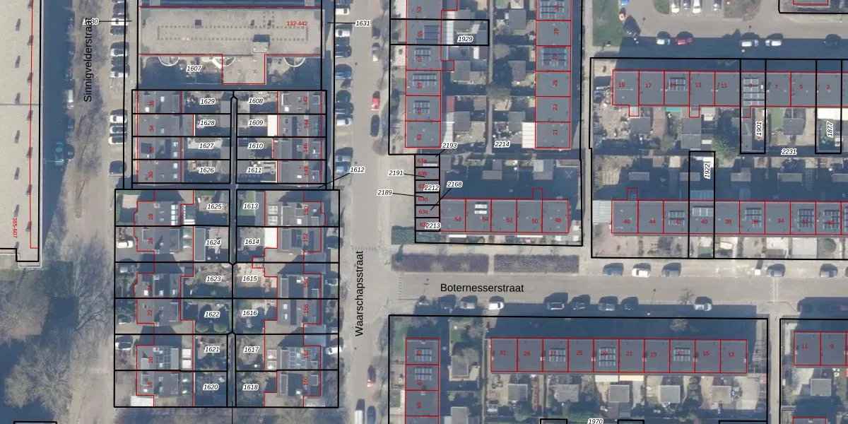 Het perceel waarop Waarschapsstraat 63-e staat heeft een oppervlakte van 18 m². Dit is een klein perceel. De perceeloppervlakte wordt geregistreerd door het Kadaster. Gedetailleerde informatie over de maten van dit perceel kunt u vinden in het rapport Kadastrale kaart met maatvoering van Waarschapsstraat 63-e.