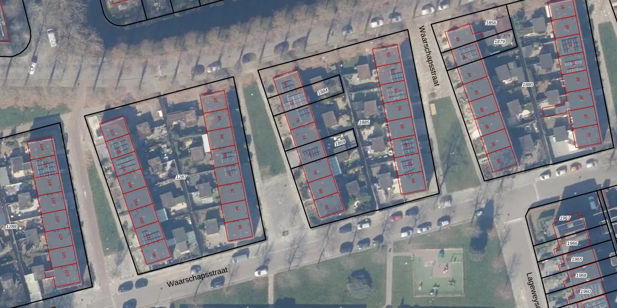 Gebruik de zoekbalk of klik op een perceel voor informatie over de adressen binnen dit perceel.
