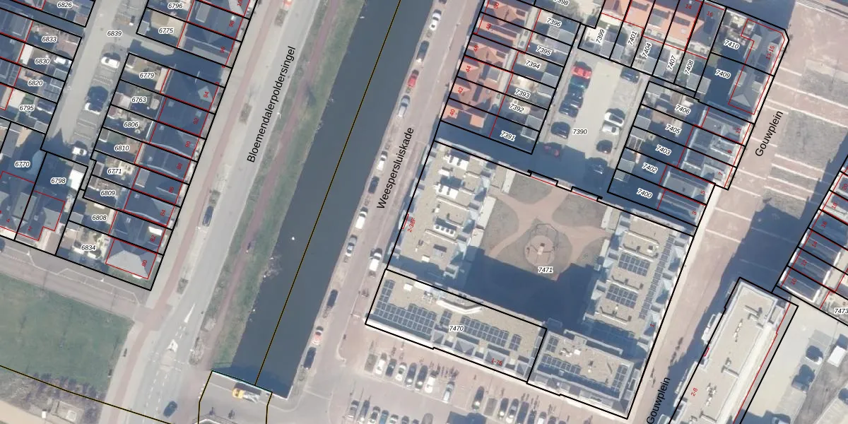 Het perceel waarop Weespersluiskade 10 staat heeft een oppervlakte van 2475 m². Dit is een zeer groot perceel. De perceeloppervlakte wordt geregistreerd door het Kadaster. Gedetailleerde informatie over de maten van dit perceel kunt u vinden in het rapport Kadastrale kaart met maatvoering van Weespersluiskade 10.