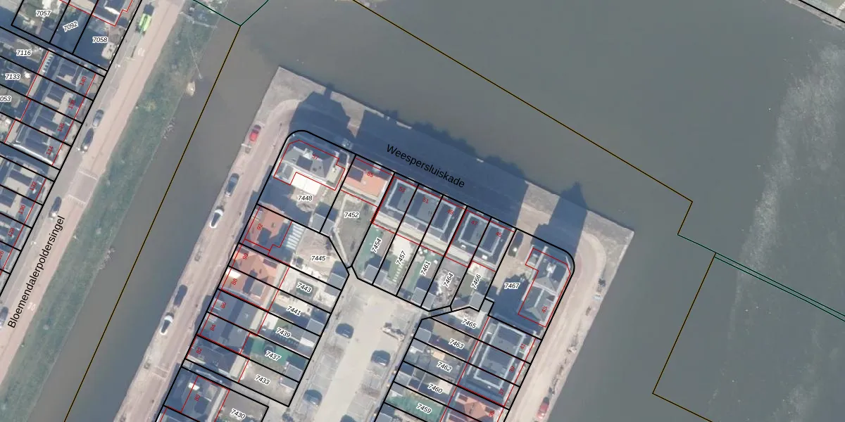 Weespersluiskade 51 is gelegen op kadastraal perceel WEE02B7457. Deze kadastrale aanduiding is uniek en wordt gebruikt door het Kadaster om eigendomsrechten en andere zakelijke rechten vast te leggen. Het perceel maakt onderdeel uit van de kadastrale gemeente Weesp.