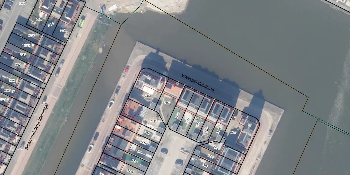 Weespersluiskade 55 is gelegen op kadastraal perceel WEE02B7452. Deze kadastrale aanduiding is uniek en wordt gebruikt door het Kadaster om eigendomsrechten en andere zakelijke rechten vast te leggen. Het perceel maakt onderdeel uit van de kadastrale gemeente Weesp.