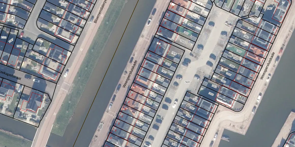 Weespersluiskade 74 is gelegen op kadastraal perceel WEE02B7426. Deze kadastrale aanduiding is uniek en wordt gebruikt door het Kadaster om eigendomsrechten en andere zakelijke rechten vast te leggen. Het perceel maakt onderdeel uit van de kadastrale gemeente Weesp.