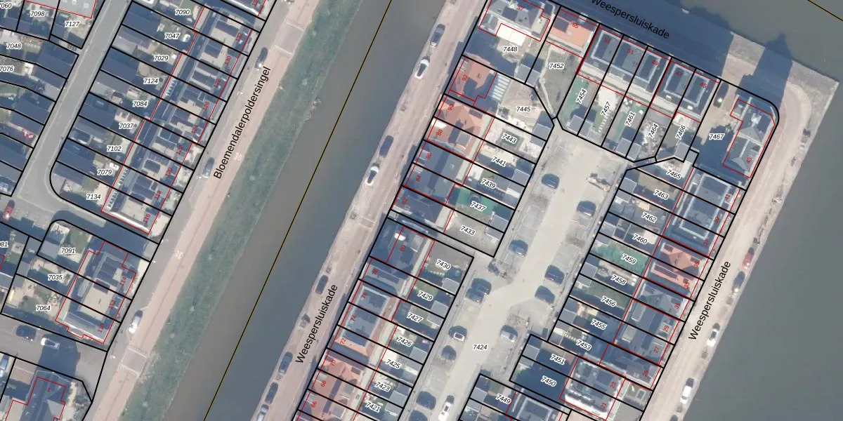 Weespersluiskade 82 is gelegen op kadastraal perceel WEE02B7433. Deze kadastrale aanduiding is uniek en wordt gebruikt door het Kadaster om eigendomsrechten en andere zakelijke rechten vast te leggen. Het perceel maakt onderdeel uit van de kadastrale gemeente Weesp.