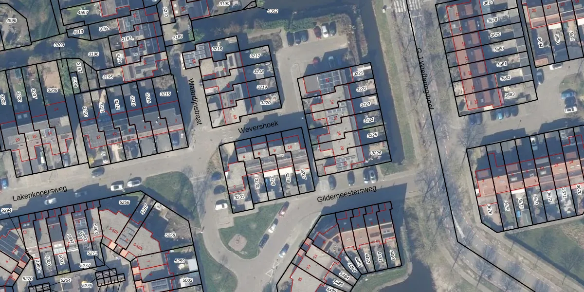 Wevershoek 10 is gelegen op kadastraal perceel WEE02B3227. Deze kadastrale aanduiding is uniek en wordt gebruikt door het Kadaster om eigendomsrechten en andere zakelijke rechten vast te leggen. Het perceel maakt onderdeel uit van de kadastrale gemeente Weesp.