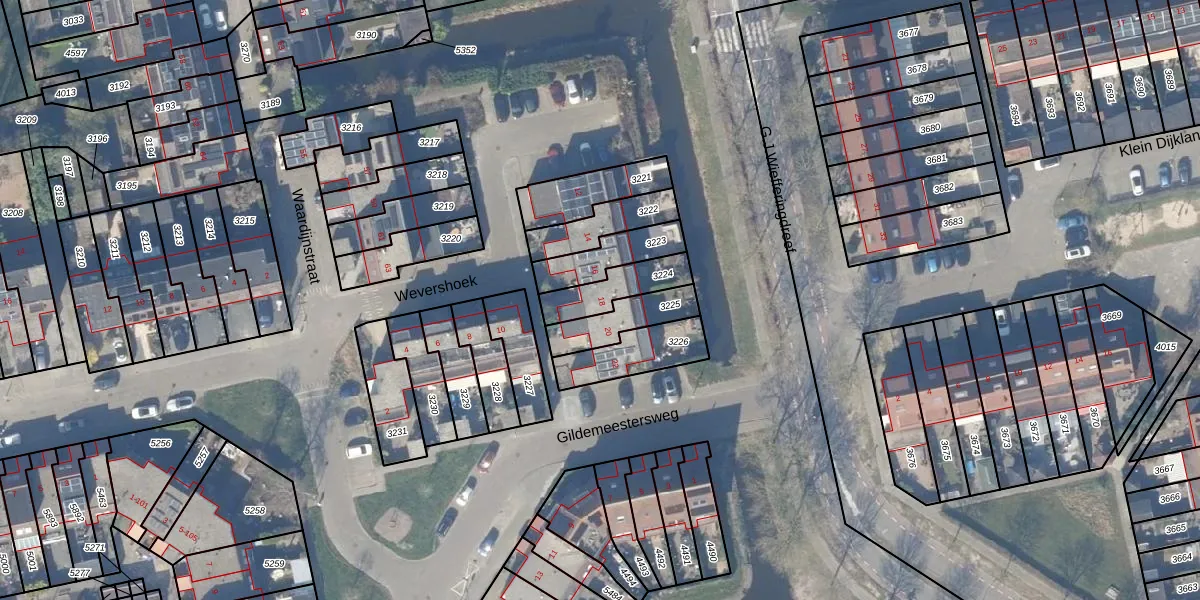 Wevershoek 18 is gelegen op kadastraal perceel WEE02B3224. Deze kadastrale aanduiding is uniek en wordt gebruikt door het Kadaster om eigendomsrechten en andere zakelijke rechten vast te leggen. Het perceel maakt onderdeel uit van de kadastrale gemeente Weesp.