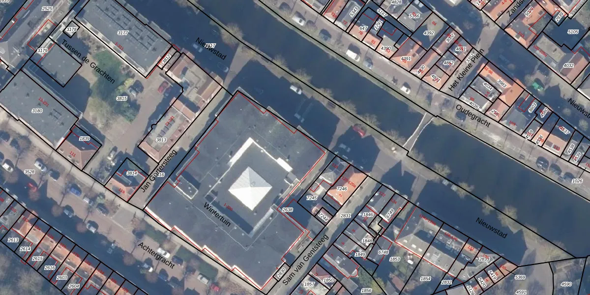 Het perceel waarop Wintertuin 102 staat heeft een oppervlakte van 2455 m². Dit is een zeer groot perceel. De perceeloppervlakte wordt geregistreerd door het Kadaster. Gedetailleerde informatie over de maten van dit perceel kunt u vinden in het rapport Kadastrale kaart met maatvoering van Wintertuin 102.