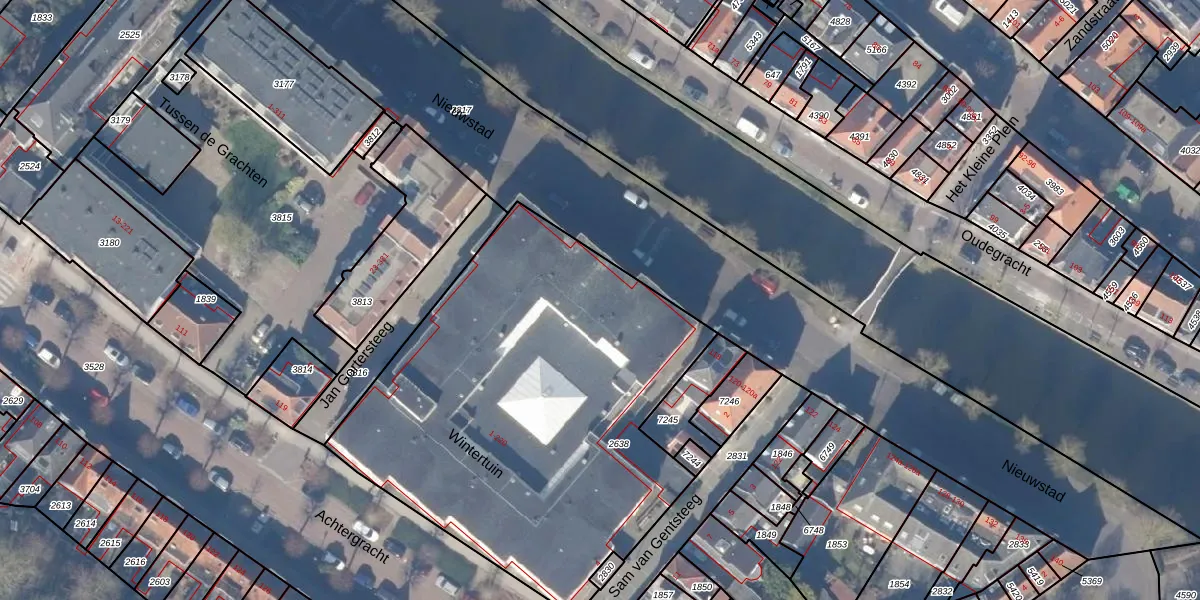 Het perceel waarop Wintertuin 103 staat heeft een oppervlakte van 2455 m². Dit is een zeer groot perceel. De perceeloppervlakte wordt geregistreerd door het Kadaster. Gedetailleerde informatie over de maten van dit perceel kunt u vinden in het rapport Kadastrale kaart met maatvoering van Wintertuin 103.