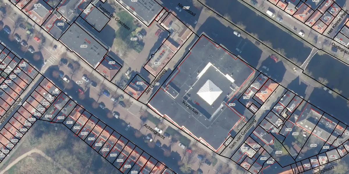 Het perceel waarop Wintertuin 110 staat heeft een oppervlakte van 2455 m². Dit is een zeer groot perceel. De perceeloppervlakte wordt geregistreerd door het Kadaster. Gedetailleerde informatie over de maten van dit perceel kunt u vinden in het rapport Kadastrale kaart met maatvoering van Wintertuin 110.