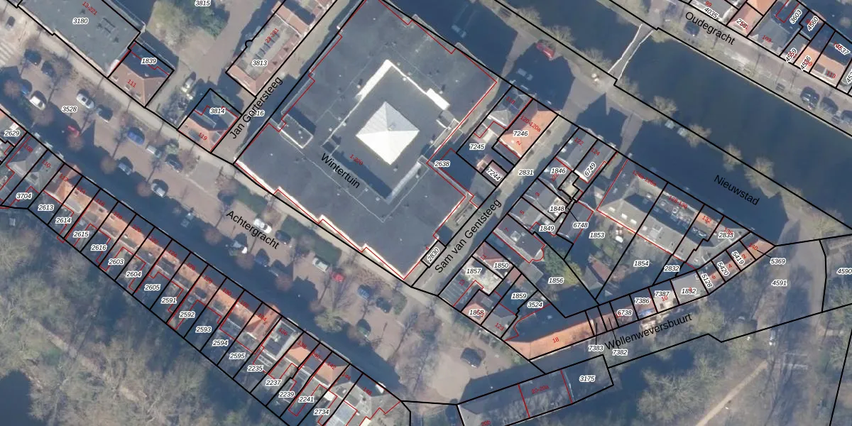 Het perceel waarop Wintertuin 119 staat heeft een oppervlakte van 2455 m². Dit is een zeer groot perceel. De perceeloppervlakte wordt geregistreerd door het Kadaster. Gedetailleerde informatie over de maten van dit perceel kunt u vinden in het rapport Kadastrale kaart met maatvoering van Wintertuin 119.