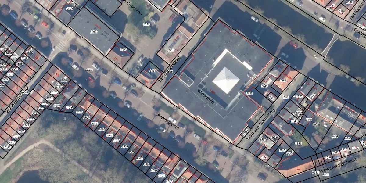 Het perceel waarop Wintertuin 12 staat heeft een oppervlakte van 2455 m². Dit is een zeer groot perceel. De perceeloppervlakte wordt geregistreerd door het Kadaster. Gedetailleerde informatie over de maten van dit perceel kunt u vinden in het rapport Kadastrale kaart met maatvoering van Wintertuin 12.