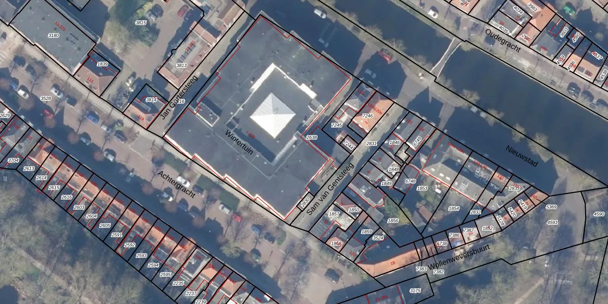 Het perceel waarop Wintertuin 20 staat heeft een oppervlakte van 2455 m². Dit is een zeer groot perceel. De perceeloppervlakte wordt geregistreerd door het Kadaster. Gedetailleerde informatie over de maten van dit perceel kunt u vinden in het rapport Kadastrale kaart met maatvoering van Wintertuin 20.