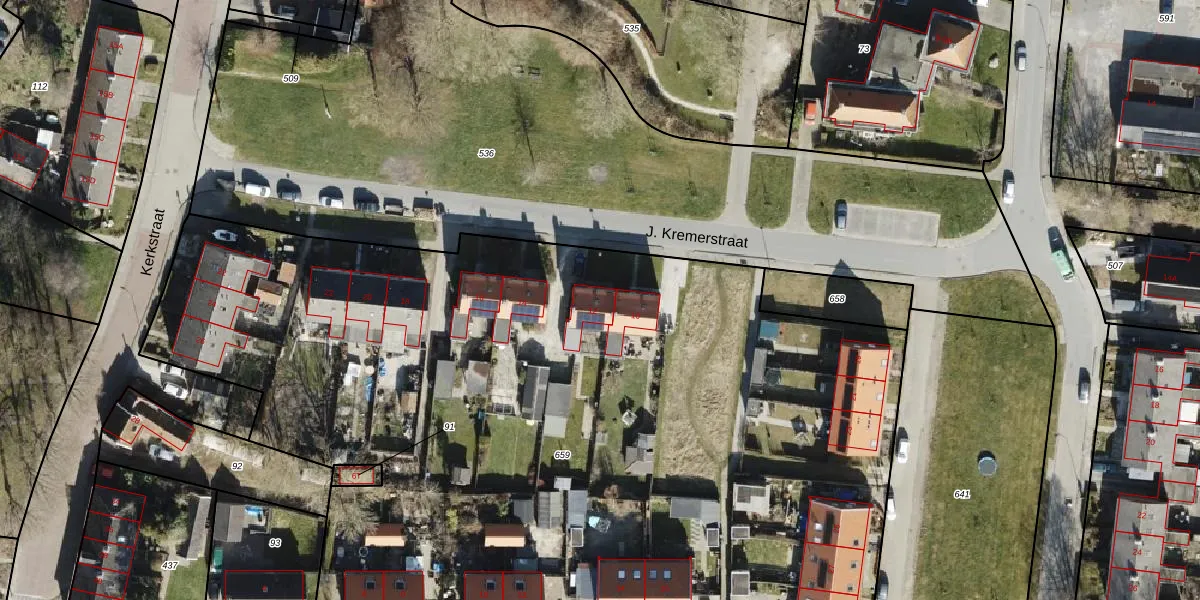 J. Kremerstraat 12 is gelegen op kadastraal perceel LEE02M659. Deze kadastrale aanduiding is uniek en wordt gebruikt door het Kadaster om eigendomsrechten en andere zakelijke rechten vast te leggen. Het perceel maakt onderdeel uit van de kadastrale gemeente Leens.