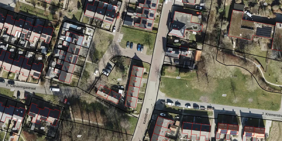 Kerkstraat 15-A is gelegen op kadastraal perceel LEE02M112. Deze kadastrale aanduiding is uniek en wordt gebruikt door het Kadaster om eigendomsrechten en andere zakelijke rechten vast te leggen. Het perceel maakt onderdeel uit van de kadastrale gemeente Leens.