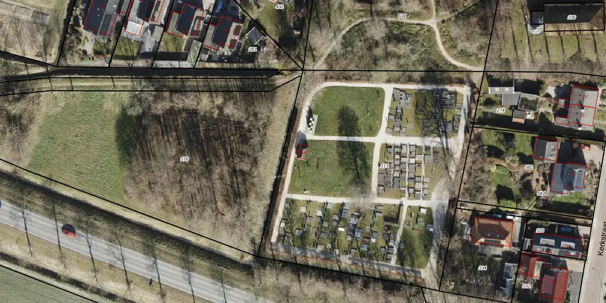 Het perceel waarop Kerkstraat 21-A staat heeft een oppervlakte van 4085 m². Dit is een zeer groot perceel. De perceeloppervlakte wordt geregistreerd door het Kadaster. Gedetailleerde informatie over de maten van dit perceel kunt u vinden in het rapport Kadastrale kaart met maatvoering van Kerkstraat 21-A.