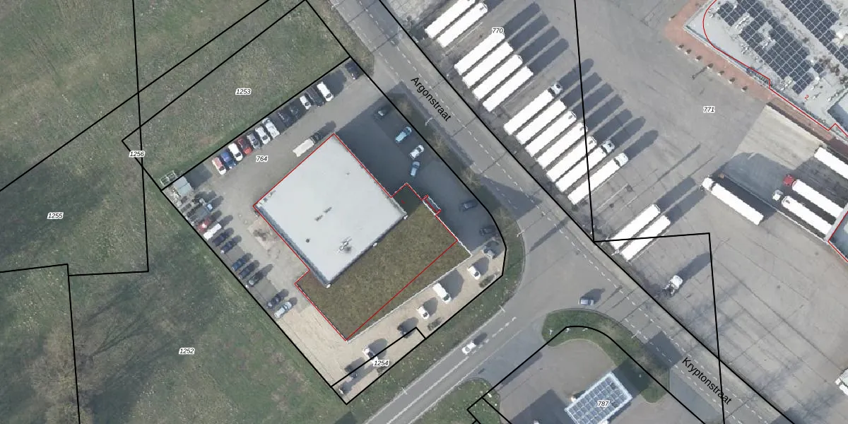 Het perceel waarop Argonstraat 1 staat heeft een oppervlakte van 3415 m². Dit is een zeer groot perceel. De perceeloppervlakte wordt geregistreerd door het Kadaster. Gedetailleerde informatie over de maten van dit perceel kunt u vinden in het rapport Kadastrale kaart met maatvoering van Argonstraat 1.
