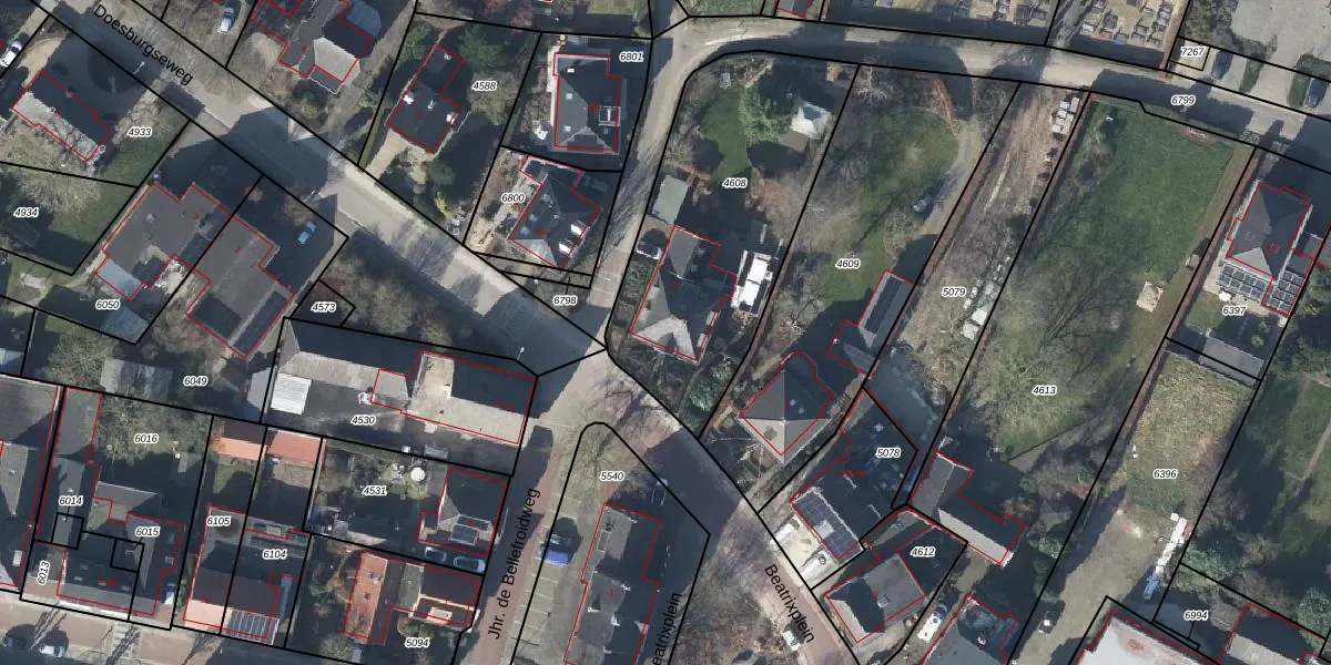 Het perceel waarop Beatrixplein 2 staat heeft een oppervlakte van 1180 m². Dit is een zeer groot perceel. De perceeloppervlakte wordt geregistreerd door het Kadaster. Gedetailleerde informatie over de maten van dit perceel kunt u vinden in het rapport Kadastrale kaart met maatvoering van Beatrixplein 2.