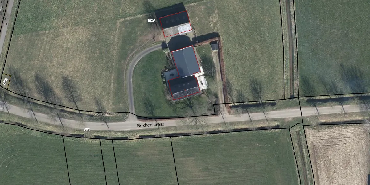 Het perceel waarop Bokkenstraat 1 staat heeft een oppervlakte van 1,4 ha. Dit is een zeer groot perceel. De perceeloppervlakte wordt geregistreerd door het Kadaster. Gedetailleerde informatie over de maten van dit perceel kunt u vinden in het rapport Kadastrale kaart met maatvoering van Bokkenstraat 1.