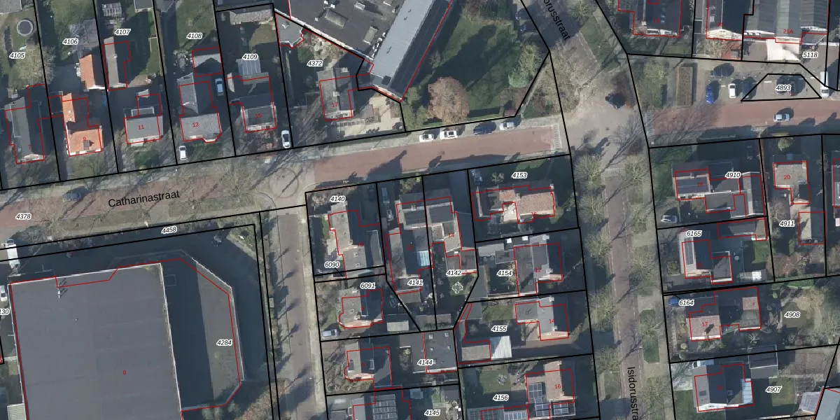 Het perceel waarop Catharinastraat 12 staat heeft een oppervlakte van 359 m². Dit is een groot perceel. De perceeloppervlakte wordt geregistreerd door het Kadaster. Gedetailleerde informatie over de maten van dit perceel kunt u vinden in het rapport Kadastrale kaart met maatvoering van Catharinastraat 12.