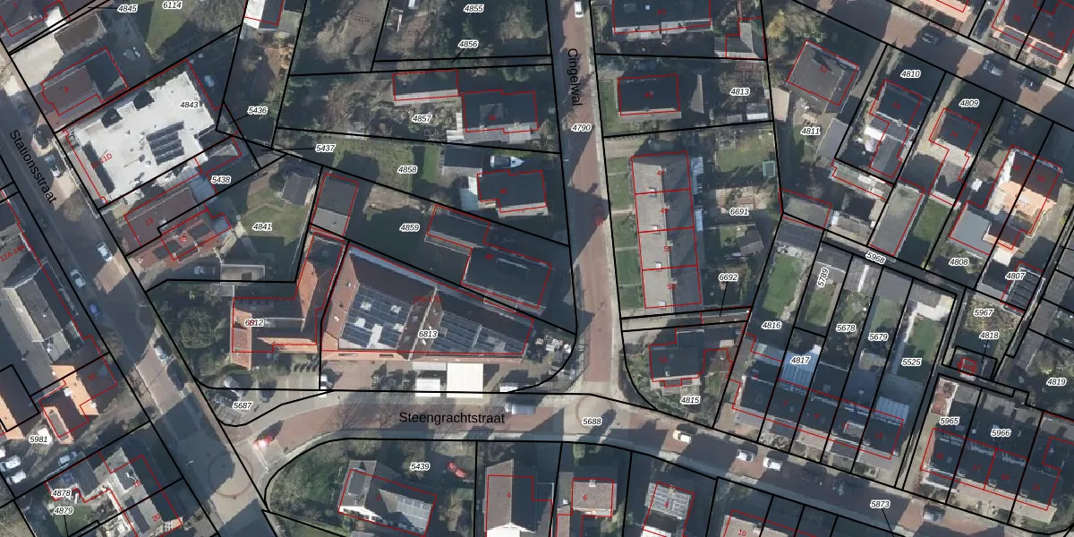 Het perceel waarop Cingelwal 48 staat heeft een oppervlakte van 638 m². Dit is een groot perceel. De perceeloppervlakte wordt geregistreerd door het Kadaster. Gedetailleerde informatie over de maten van dit perceel kunt u vinden in het rapport Kadastrale kaart met maatvoering van Cingelwal 48.