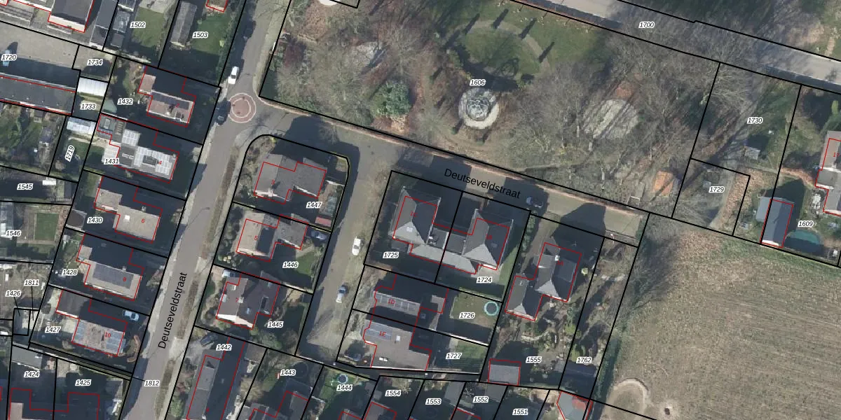 Het perceel waarop Deutseveldstraat 1-C staat heeft een oppervlakte van 408 m². Dit is een groot perceel. De perceeloppervlakte wordt geregistreerd door het Kadaster. Gedetailleerde informatie over de maten van dit perceel kunt u vinden in het rapport Kadastrale kaart met maatvoering van Deutseveldstraat 1-C.