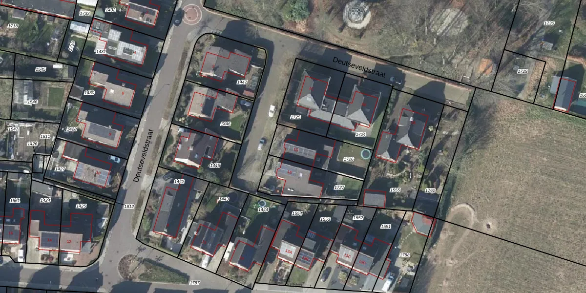 Het perceel waarop Deutseveldstraat 1-D staat heeft een oppervlakte van 380 m². Dit is een groot perceel. De perceeloppervlakte wordt geregistreerd door het Kadaster. Gedetailleerde informatie over de maten van dit perceel kunt u vinden in het rapport Kadastrale kaart met maatvoering van Deutseveldstraat 1-D.